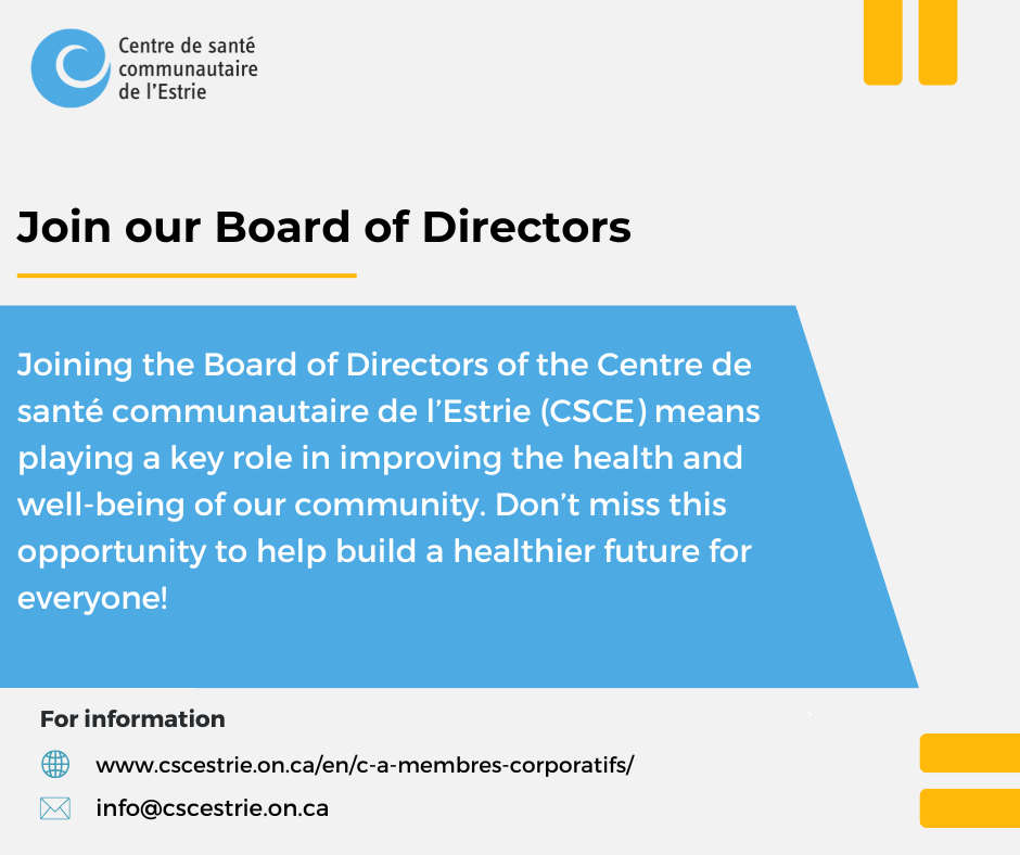 By becoming a CSCE member, you will be able to express your concerns regarding health services, identify needs the CSCE might meet and be part of a group concerned by its community’s wellbeing.