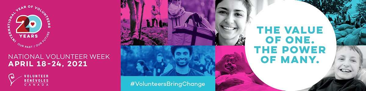 The National Volunteer Week theme for 2021, The Value of One, The Power of Many, reflects on the awe-inspiring acts of kindness by millions of individuals AND the magic that happens when we work together towards a common purpose. This past year, we have seen people supporting family, friends, neighbours, and strangers, people standing up to systemic racism, and people sharing insights on how to create a more just and equitable society. We recognize the value of the caring and compassion that each one has shown another, and we recognize the power of people, organizations, and sectors working together.