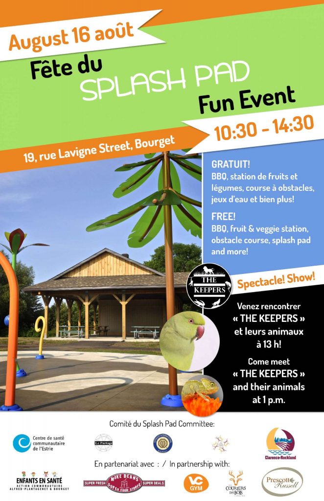 Le jeudi 16 août 2018, ne manquez pas la Fête du Splash Pad de Bourget qui aura lieu de 10h30 à 14h30!