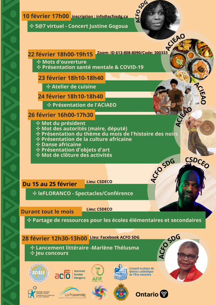 Dans le cadre de la 26e édition du Mois de l’histoire des noirs, le Réseau de soutien à l’immigration francophone de l’Est de l’Ontario (RSIFEO) appuie ses partenaires et la communauté d’accueil dans l’Est de l’Ontario dans l’organisation de plusieurs activités afin de souligner la contribution de la communauté noire dans l’édification du Canada d’aujourd’hui.