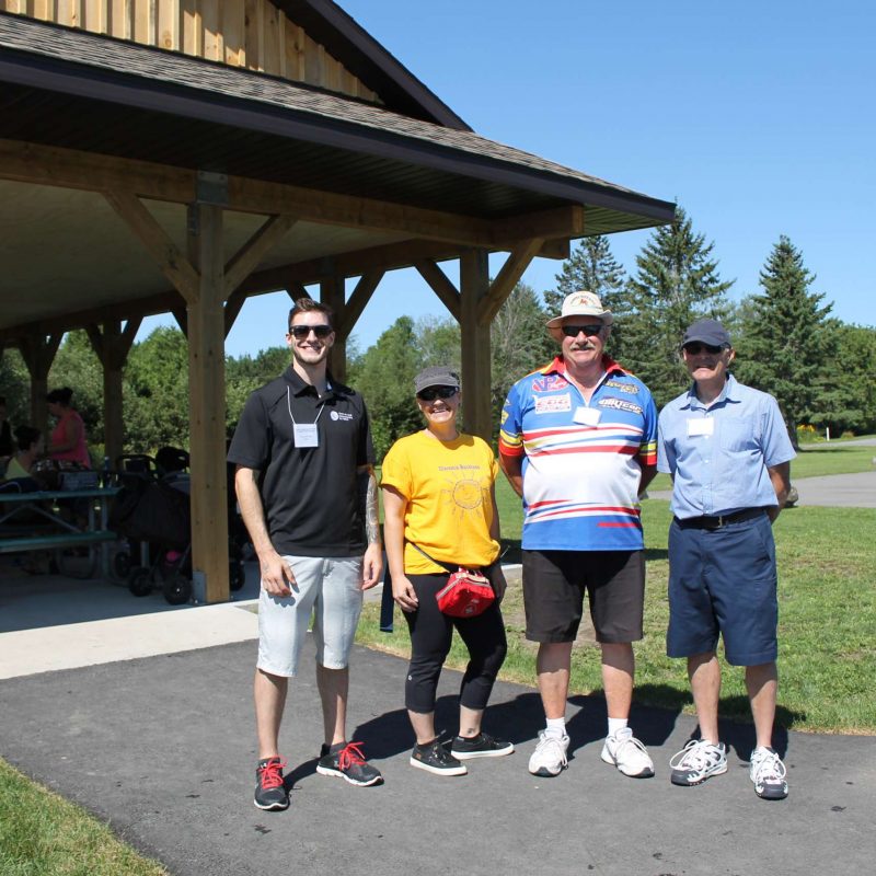 Sur la photo (les partenaires de l’événement avec le nouveau gazebo) : François Plouffe (Centre de santé communautaire de l’Estrie), Sophie Goudreau (membre de la communauté), Marc Roy (Club optimiste de Bourget) et Michel Forget (Comptoir familial Le Partage) (absents de la photo : Jean-Luc Jubinville de la Cité de Clarence-Rockland et Jacques Drouin du Comité des loisirs de Bourget).